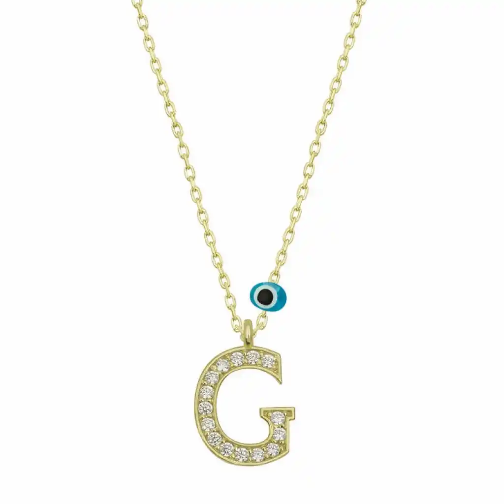 Gümüş Nazar Gold G Harfi Kadın Kolye