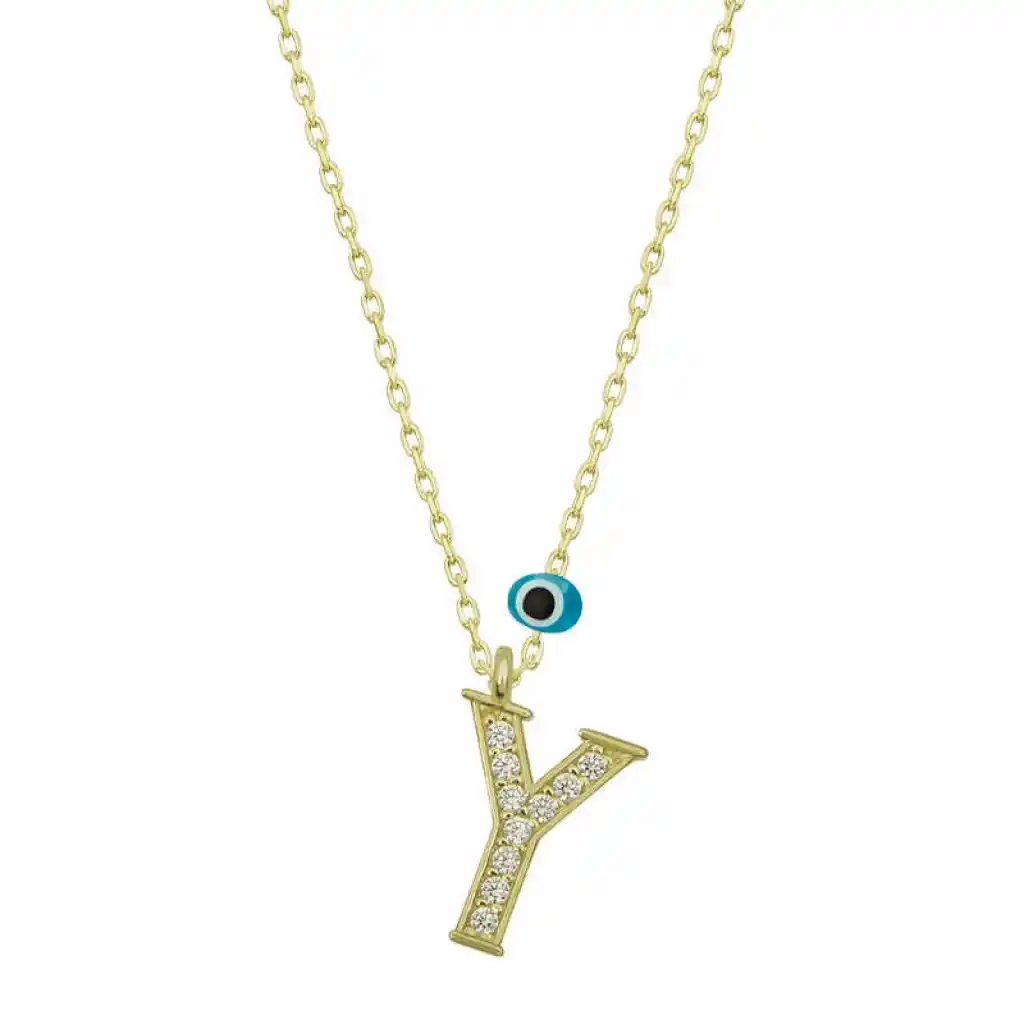 Gümüş Nazar Gold Y Harfi Kadın Kolye
