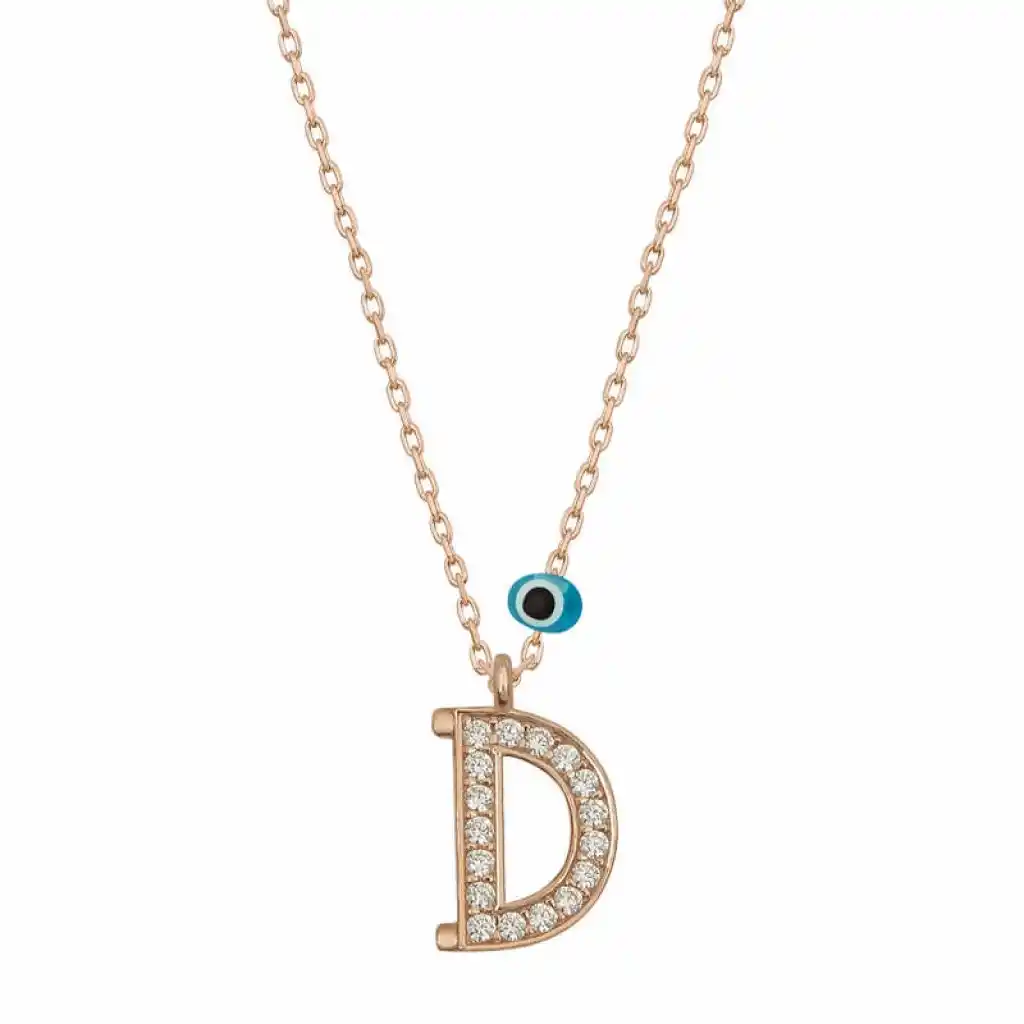 Gümüş Nazar Rose D Harfi Kadın Kolye