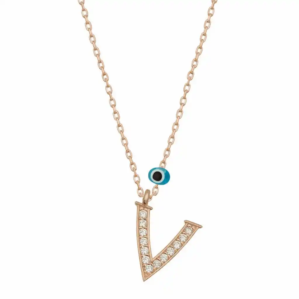 Gümüş Nazar Rose V Harfi Kadın Kolye