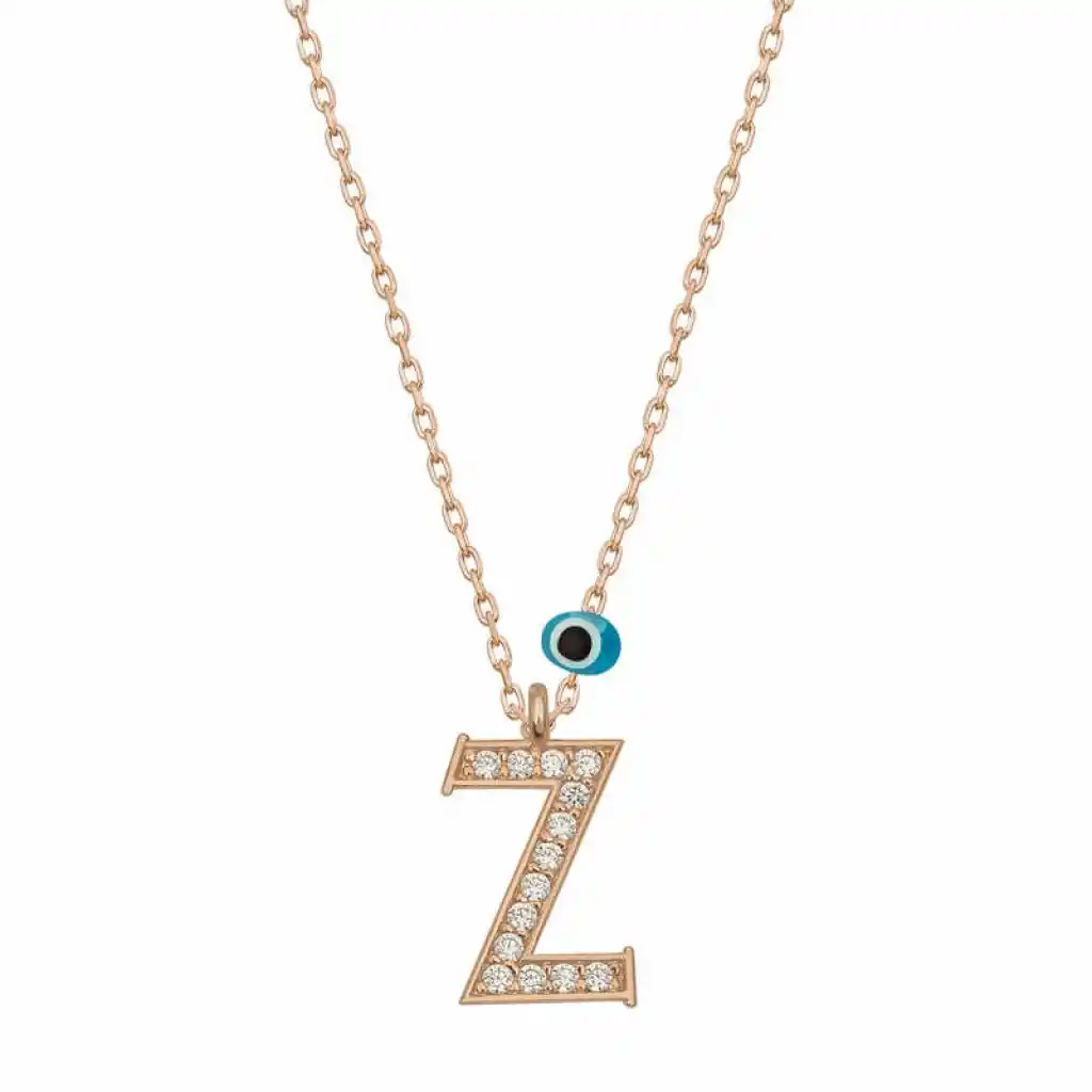 Gümüş Nazar Rose Z Harfi Kadın Kolye