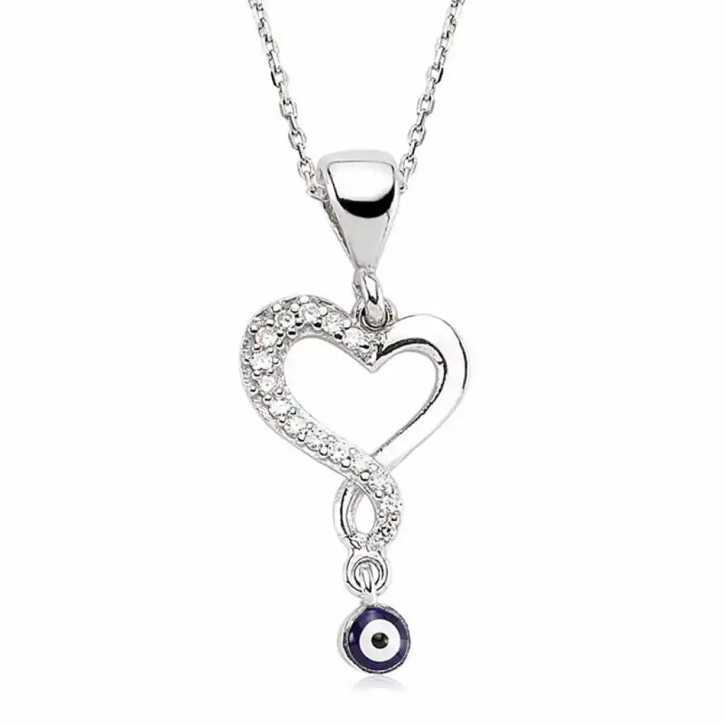 Gümüş Nazarlı Bayan Kalp Kolye