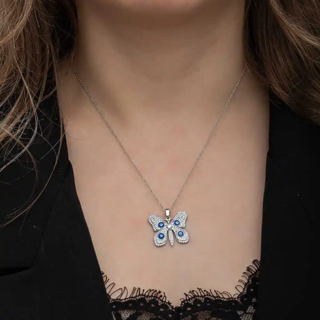 Gümüş Nazarlı Kelebek Kadın Kolye