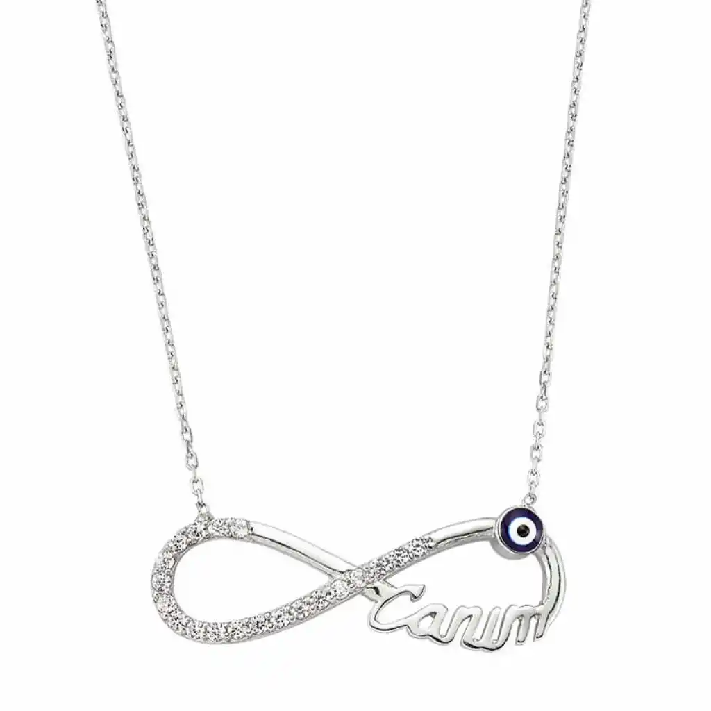 Gümüş Nazarlı Sonsuzluk Canım Bayan Kolye Sonsuzluk Kolyeler Gümüş Nazarlı Sonsuzluk Canım Bayan Kolye Sevgilinize sonsuz aşkı ifade etmenin en güzel en anlamlı yollarından biri de sevgiliye sonsuzluk