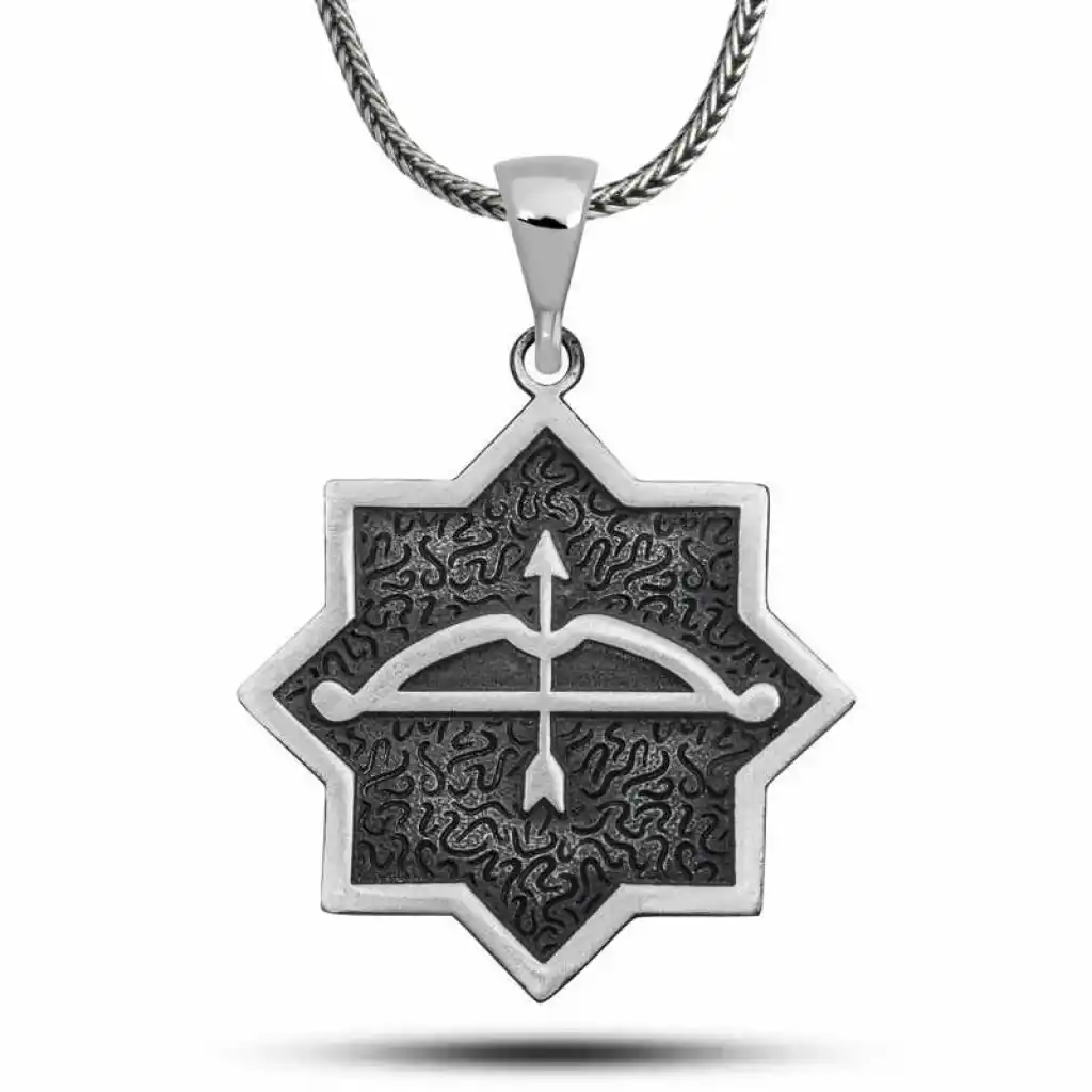 Gümüş Ok Yay İşlemeli Sekizgen Tasarım Kolye