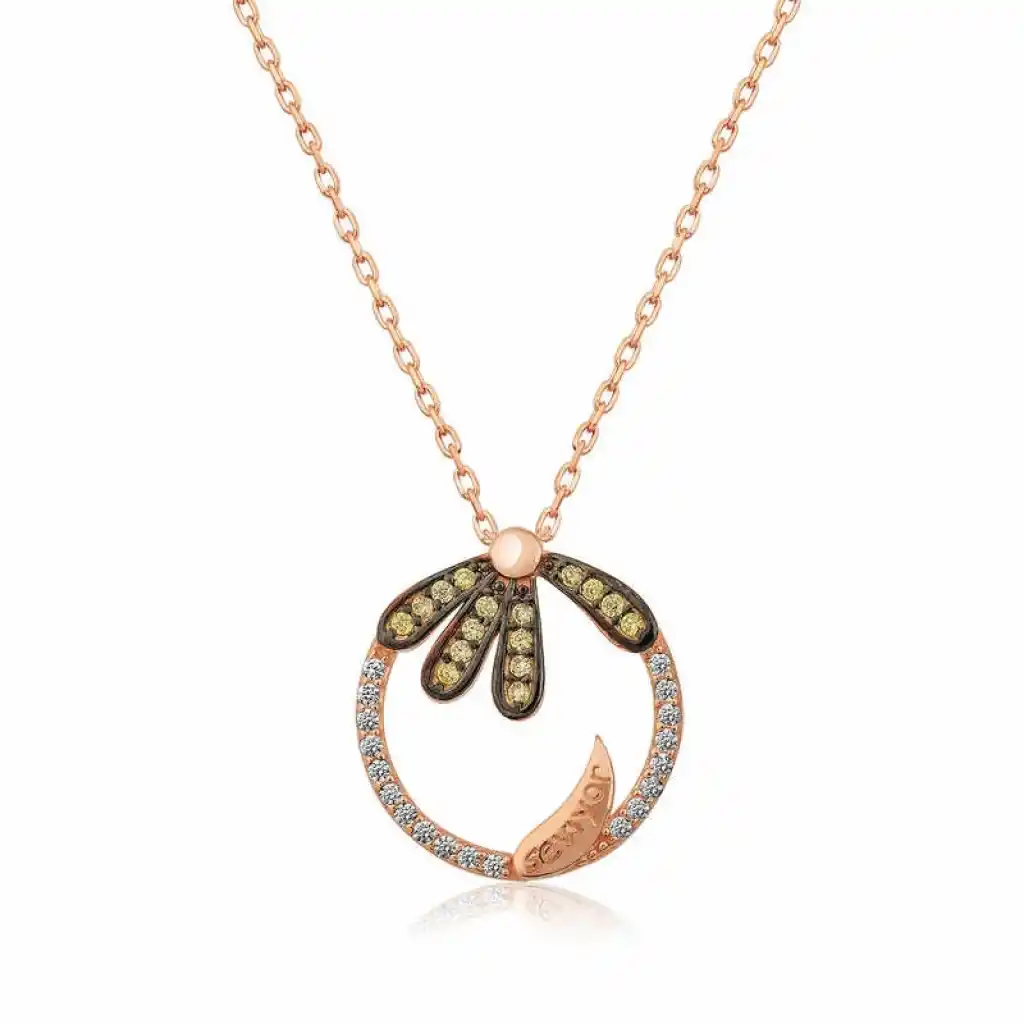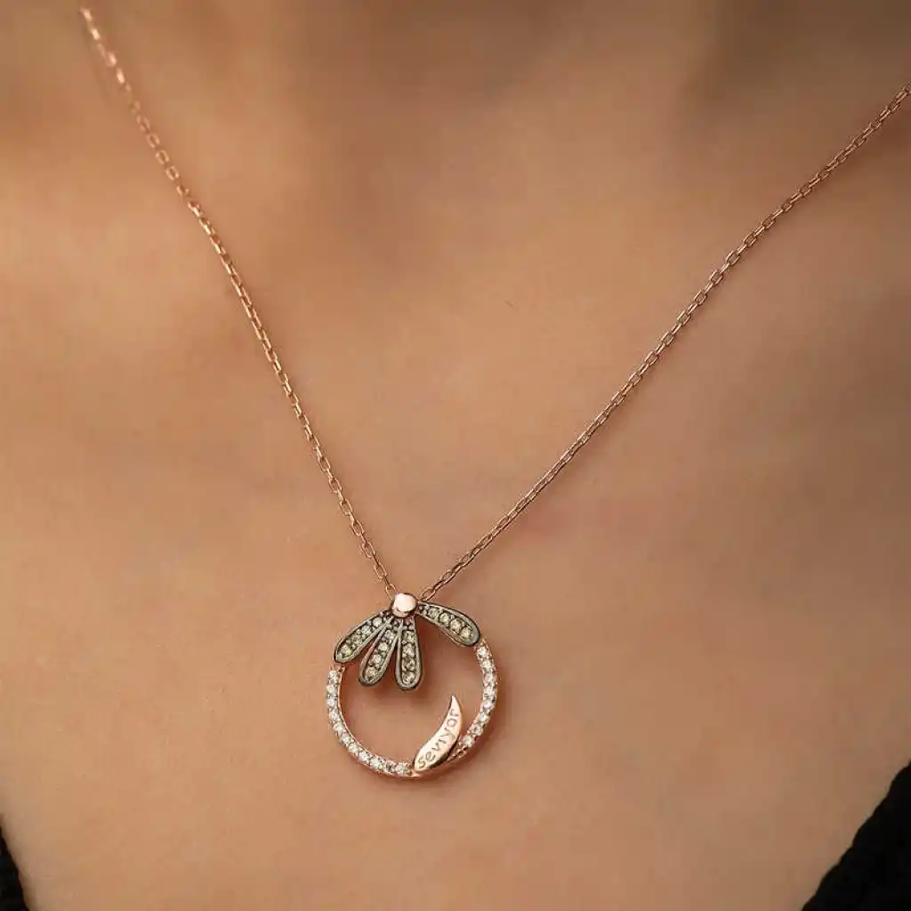 Papatya çiçeği temiz sevgi anlamını ifade eder. En büyük özelliklerinden biri her sapında bir tane olmasıdır. Seviyor sevmiyor fallarından esinlenilerek tasarlanmış bu ışıl ışıl kolye sizleri bekliyor. Papatya "seviyor" kolye; doğum günü hediyesi, sevgililer günü hediyesi veya annelere hediye olarak özel günlerde tercih edilebilecek mükemmel bir seçenektir. Gümüş papatya "seviyor "bayan kolye 925 ayar gümüşten imal edilmiştir. Bu kolye üzerinde rose altın kaplama vardır. Rose altın kaplama yapılan gümüş bayan kolye modelleri parlaklığını uzun süre muhafaza eder, gümüş rengini pembe renge çevirir. Üzerinde bulunan ışıl ışıl taşlar zirkondur. Tüm gümüş bayan kolye modellerimizde olduğu gibi gümüş papatya "seviyor" bayan kolye modeli de el emeği ile üretilmiştir. Gümüş ve değerli taşlar nedeniyle belirtilen ortalama ürün ağırlığında ± %10 sapma olabilmektedir.
