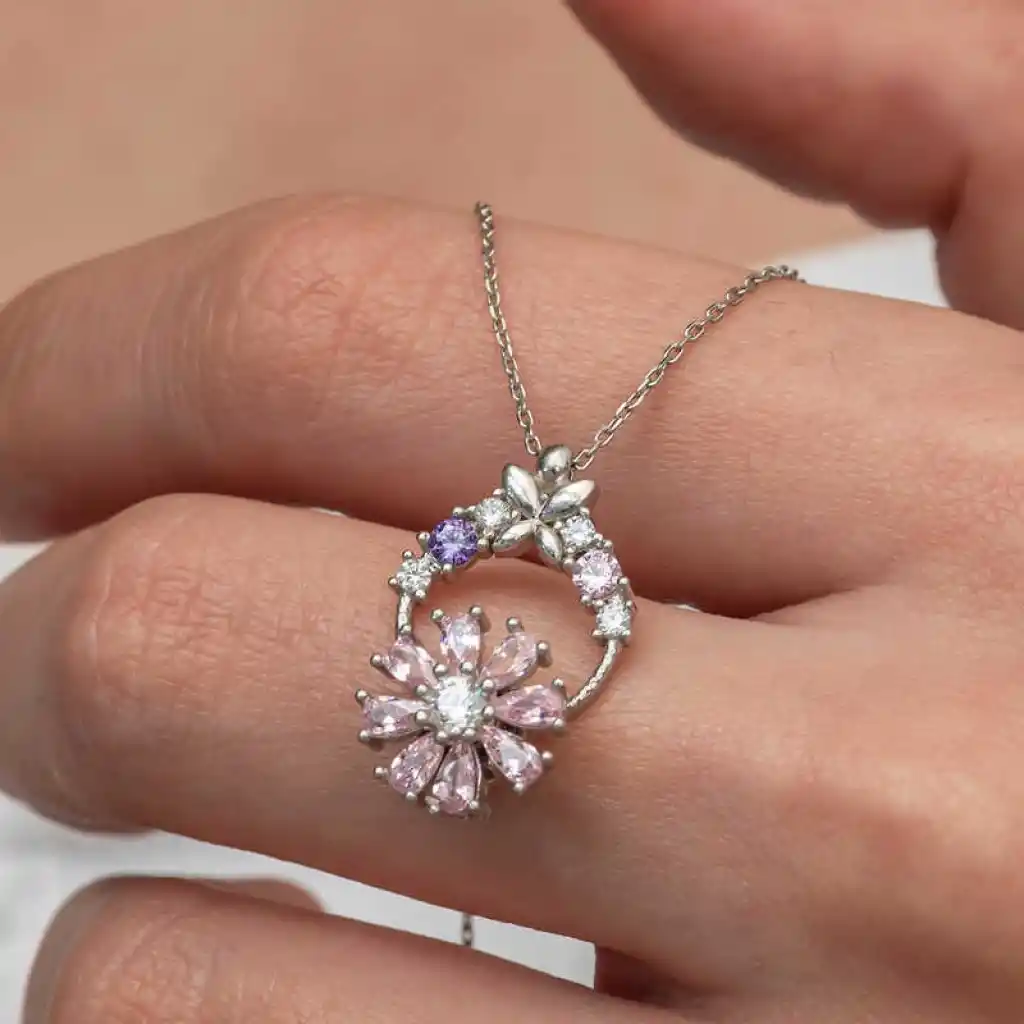 Gümüş Pembe Dönen Çiçek Kadın Kolye