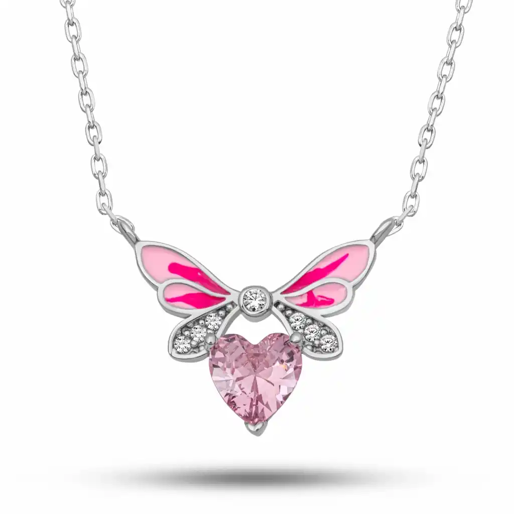 Masalsı bir zarafeti yansıtan Gümüş Pembe Kalp Peri Kanatlı Kolye, romantizmin ve zarifliğin buluştuğu özel bir tasarımdır. Parlak pembe kalp taşı, kanat figürleriyle birleşerek özgürlüğü ve sevgiyi simgeler. Işıltılı detayları sayesinde boynunuzda dikkat çekici bir parıltı oluşturur. 925 ayar gümüşten üretilen bu kolye, hem günlük şıklığınızı tamamlar hem de özel günlerde stilinize büyüleyici bir dokunuş katar. Sevginin ve zarafetin sembolü olarak sevdiklerinize hediye edebileceğiniz özel bir parçadır. Gümüş ve değerli taşlar nedeniyle belirtilen ürün ağırlığında ± %10 sapma olabilmektedir.