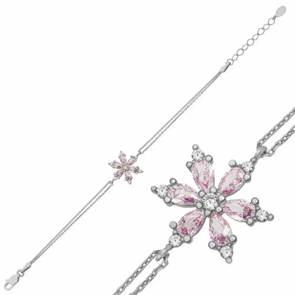 Gümüş Pembe Lotus Çiçeği Kadın Bileklik