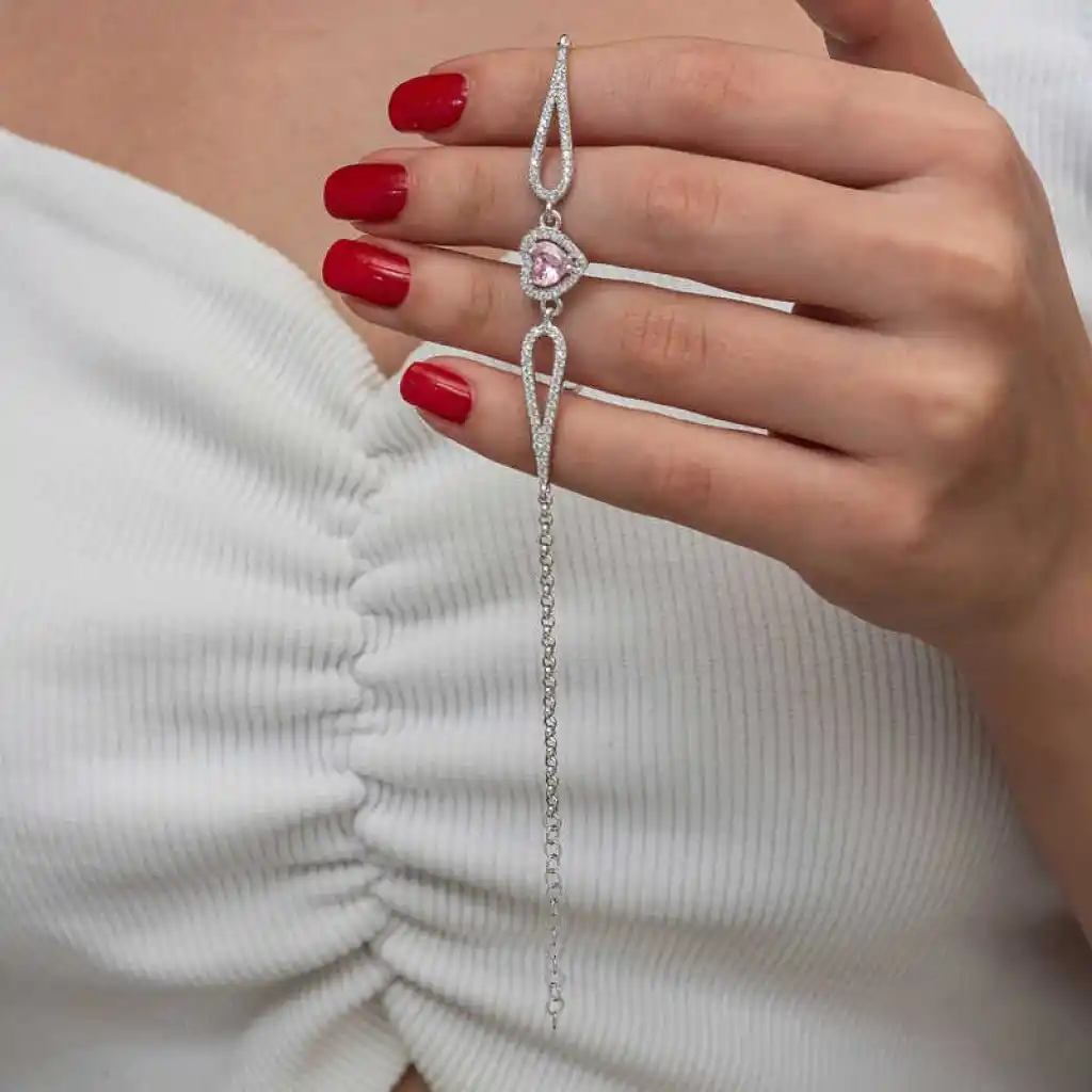 Gümüş Pembe Zirkon Taşlı Kalp Bileklik