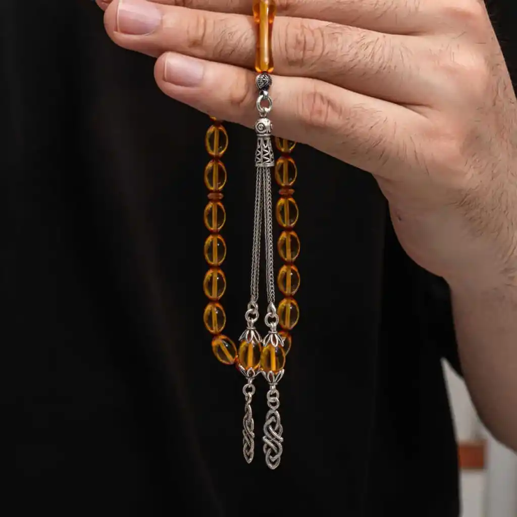 Gümüş Püskül Sıkma Kehribar Tesbih