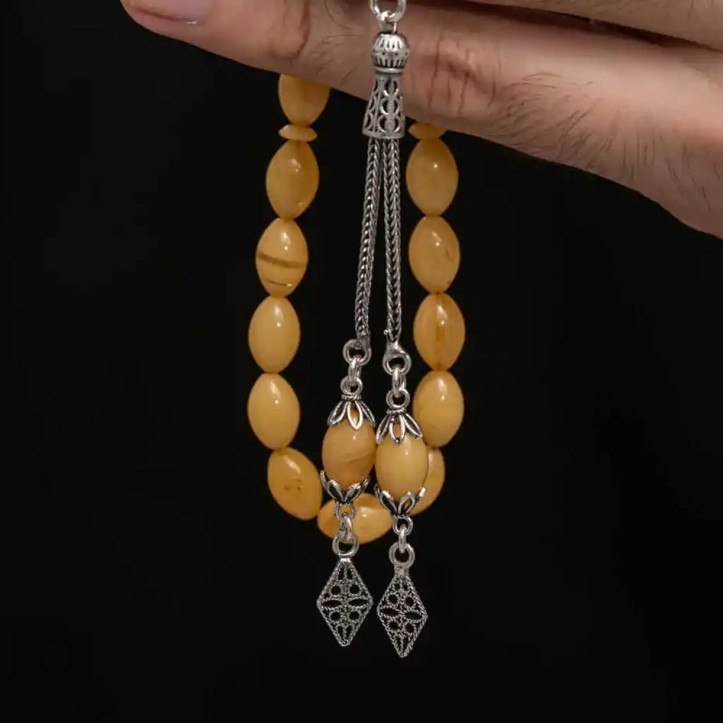 Gümüş Püskül Sıkma Kehribar Tesbih