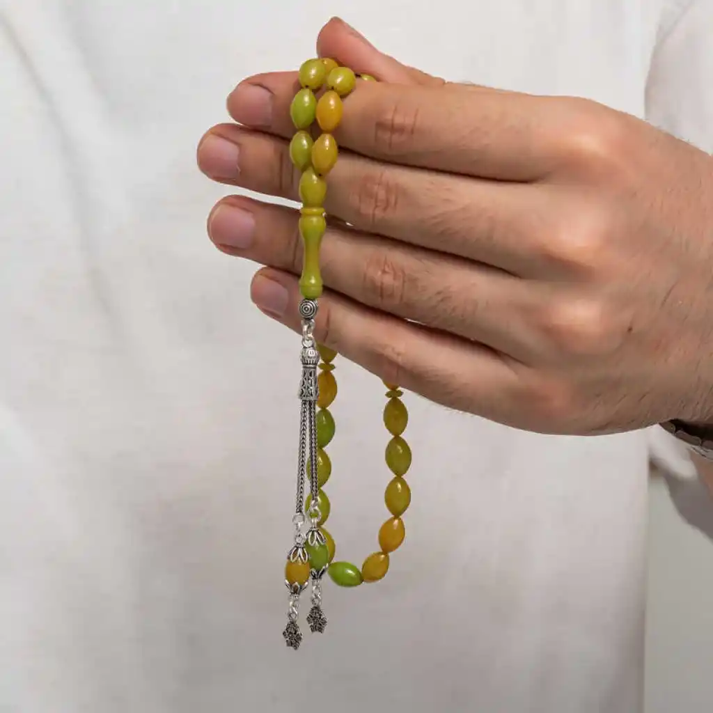 Gümüş Püskül Sıkma Kehribar Tesbih