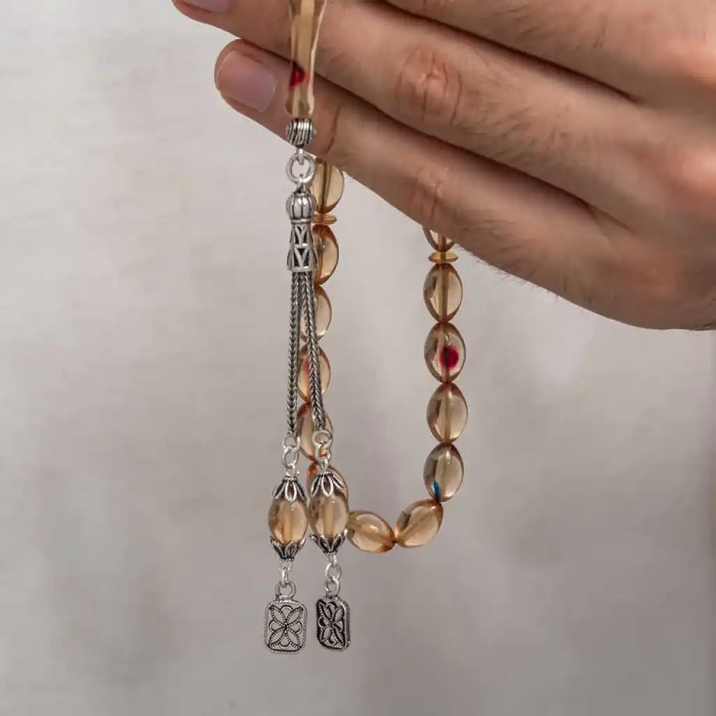 Gümüş Püskül Sıkma Kehribar Tesbih