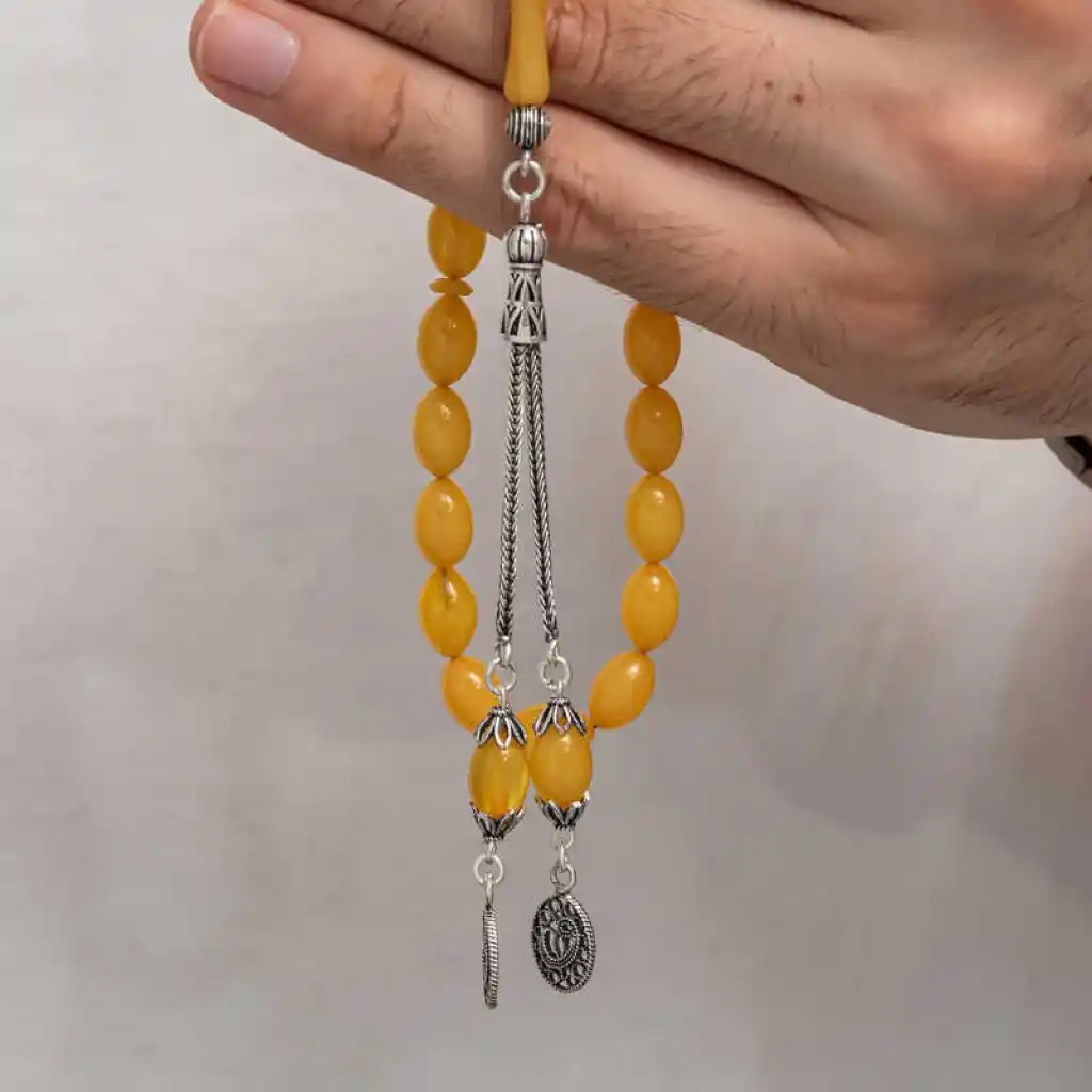 Gümüş Püskül Sıkma Kehribar Tesbih