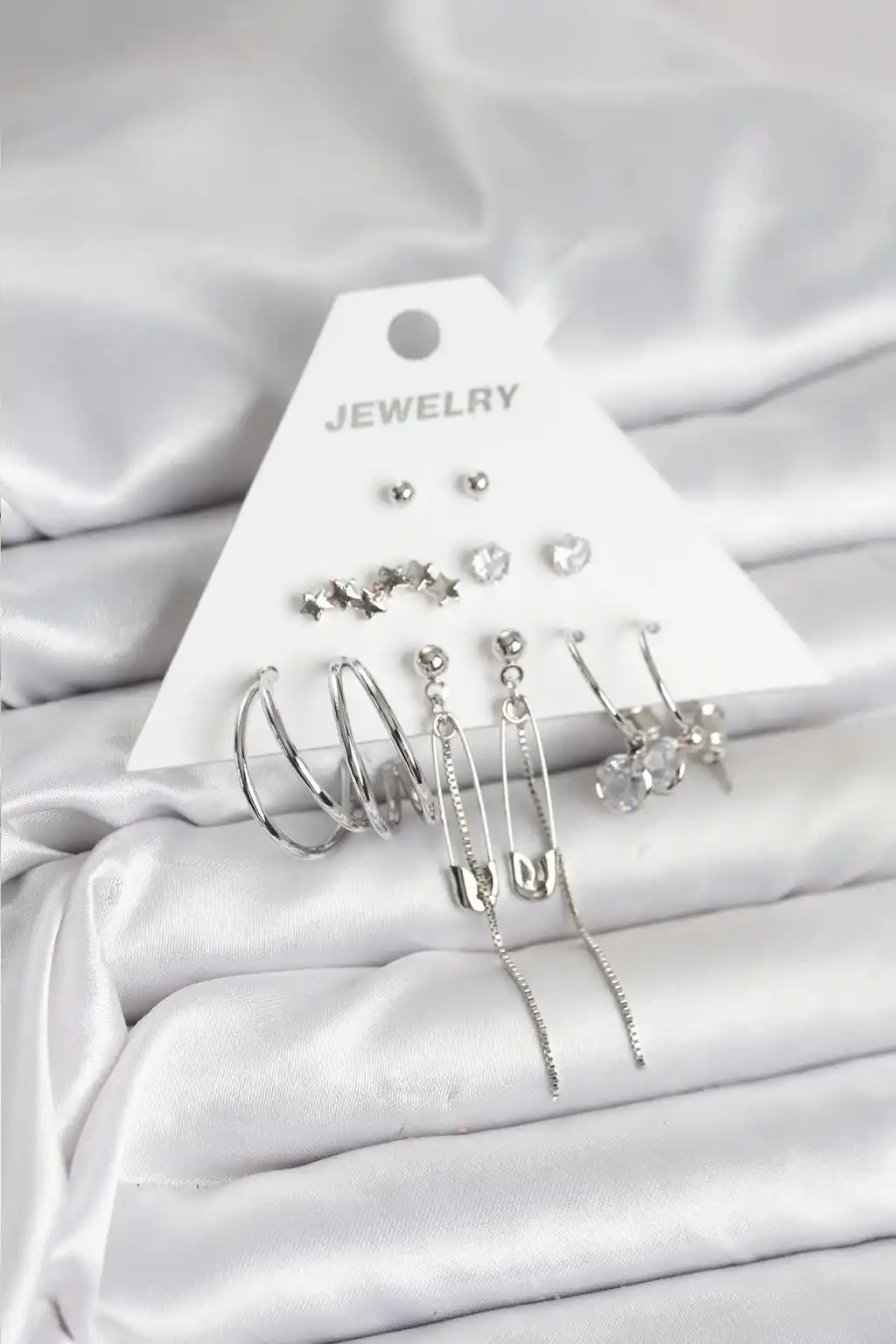 Gümüş Renk 6'lı Pirinç Küpe Seti