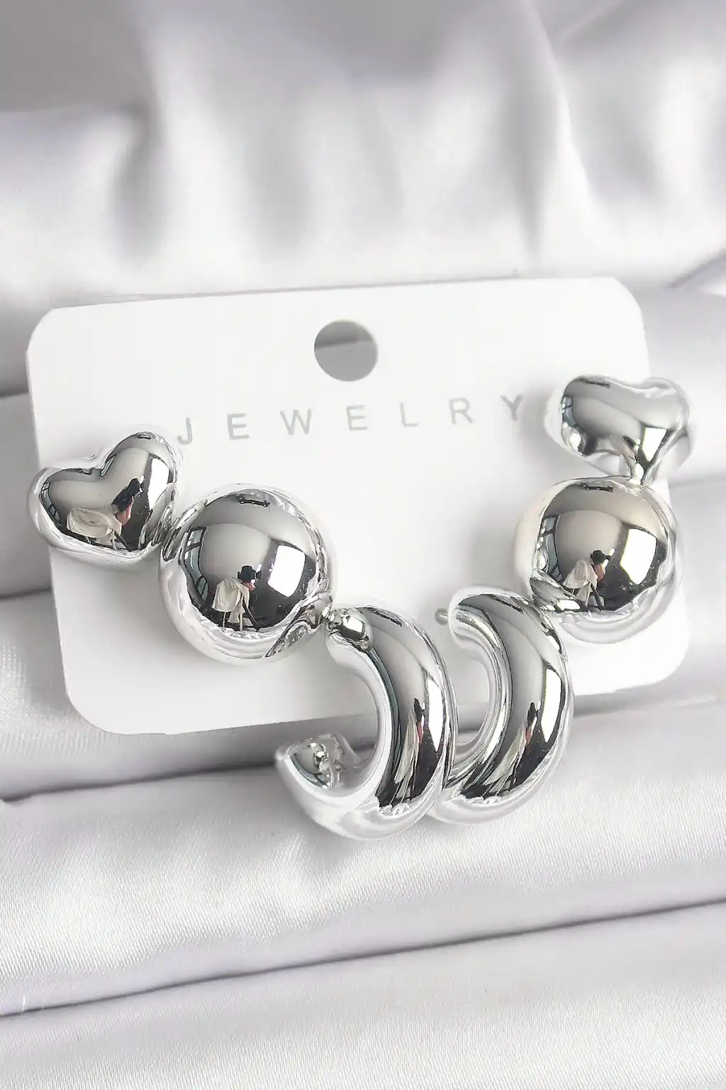 Gümüş Renk Kalp Halka Figür CCB Plastik Kadın Küpe Seti