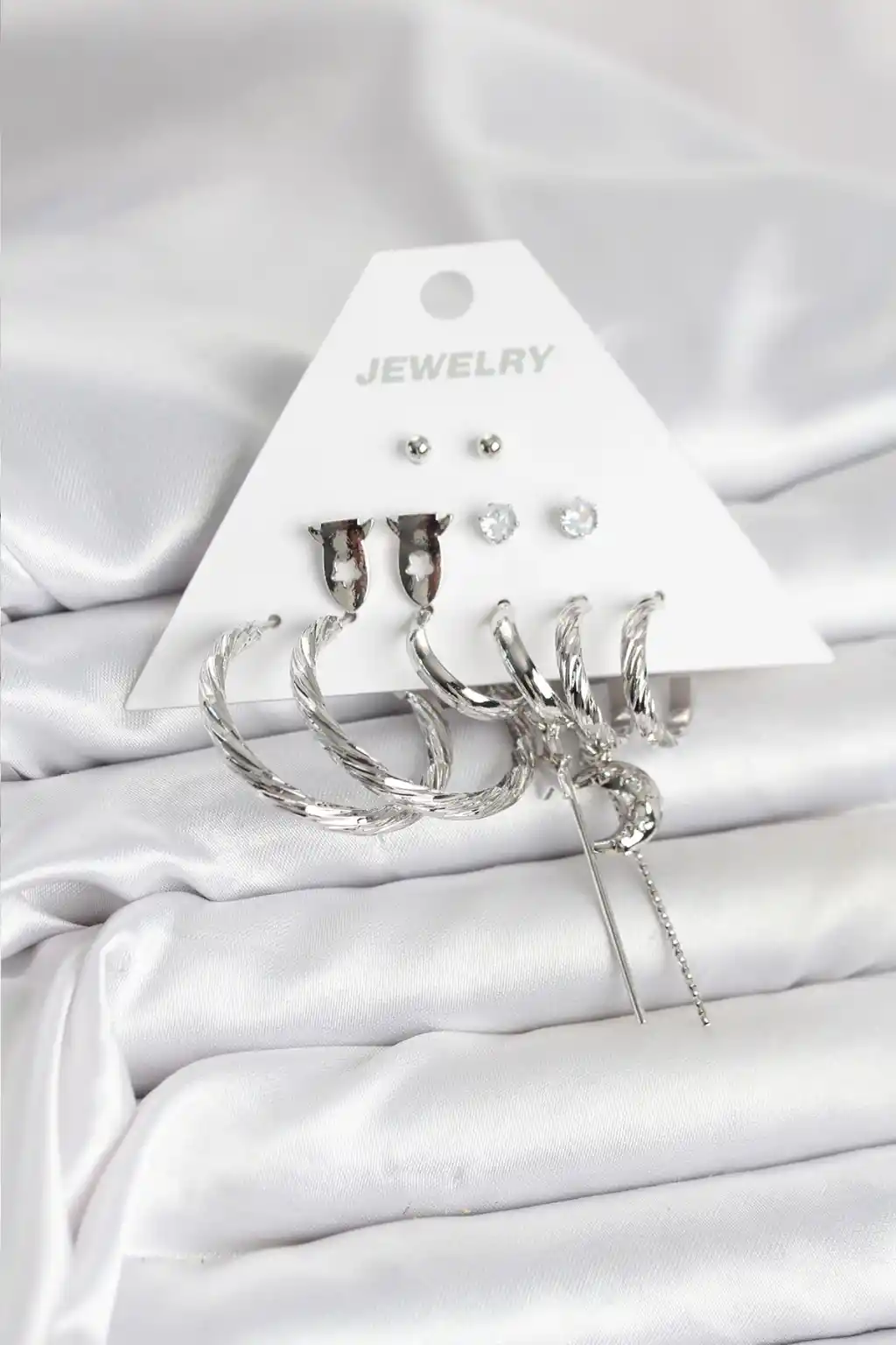 Gümüş Renk Pirinç 6'lı Kadın Küpe Seti