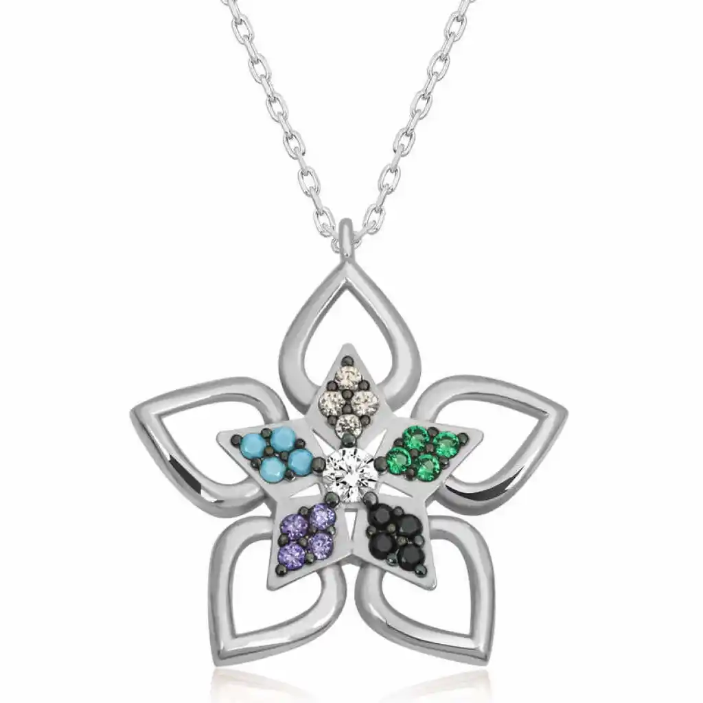 Gümüş Renkli Taşlı Çiçek Kadın Kolye