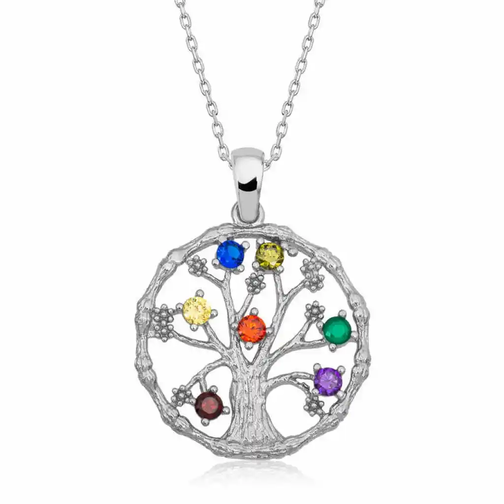 Hayat ağacı yeni bir yaşamı sembolize ediyor. Bunun yanında dünyada iz bırakmak, soyunu devam ettirme amacı yani ailenin simgesi anlamına gelmektedir. Bu şık kolye; 925 ayar gümüşten imal edilmiştir. Gümüş üzerine rodyum kaplama yapılmıştır. Rodyum kaplama yapılan ürünler parlaklığını uzun süre muhafaza eder ve oksitlenmeyi geciktirir. Tüm gümüş kadın kolyelerde olduğu gibi gümüş renkli taşlı hayat ağacı kadın kolye de el emeği ile üretilmiştir. Gümüş ve değerli taşlar nedeniyle belirtilen ürün ağırlığında ± %10 sapma olabilmektedir.