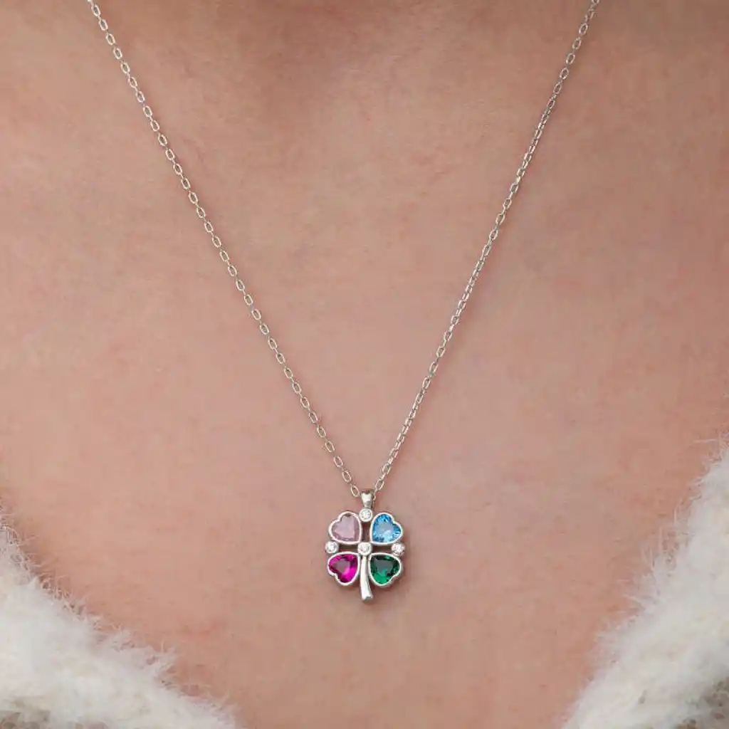 Kalp, sevgi ve bağlılık simgesi iken; yonca (özellikle dört yapraklı) şansı temsil eder. Bu nedenle, bu kolye, hem aşkı hem de şansı çekmek isteyenler için özel bir anlam taşır.Bu şık kolye; doğum günü hediyesi, sevgililer günü veya özel günlerde tercih edilebilecek mükemmel bir seçenektir. Kolye; 925 ayar gümüşten imal edilmiştir. Gümüş üzerine rodyum kaplama yapılmıştır. Gümüş ve değerli taşlar nedeniyle belirtilen ortalama ürün ağırlığında ± %10 sapma olabilmektedir.