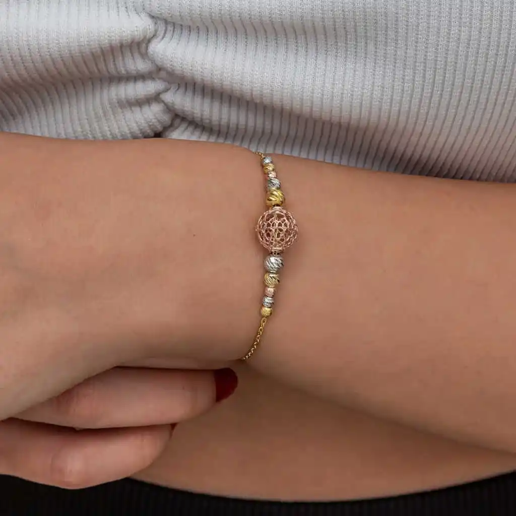 Renkli top dorika bileklik, çeşitli renk ve desenlerdeki top şeklindeki boncukların bir araya getirilerek oluşturduğu şık ve hareketli bir bilekliktir.Gümüş üzerine rodyum,rose,gold kaplama yapılmıştır.Bu şık bileklik; doğum günü hediyesi, sevgililer günü hediyesi veya annelere hediye olarak özel günlerde tercih edilebilecek mükemmel bir seçenektir. Bileklik, 925 ayar gümüşten imal edilmiştir.Tüm gümüş bilekliklerde olduğu gibi bu gümüş renkli dorika kadın bileklik de tamamı el emeği ile üretilmiştir. Gümüş ve değerli taşlar nedeniyle belirtilen ortalama ürün ağırlığında ± %10 sapma olabilmektedir.