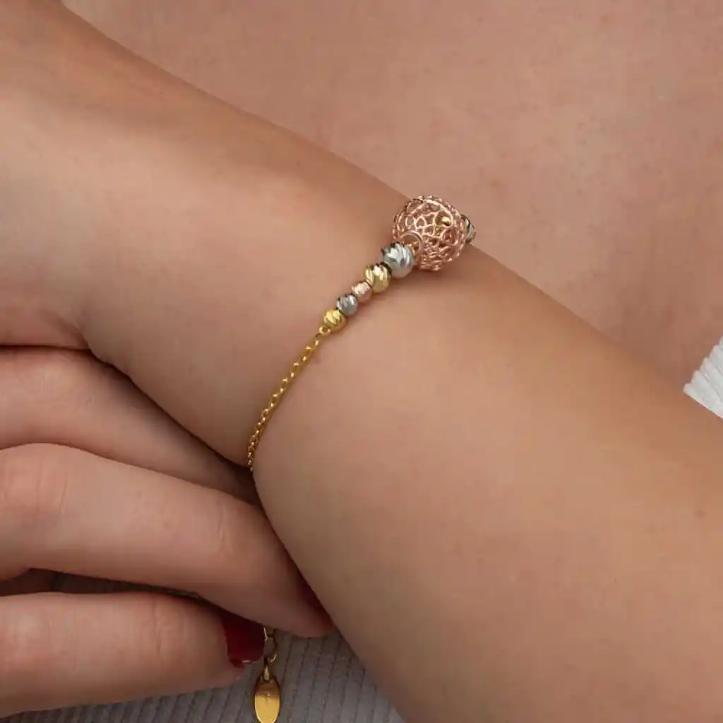Renkli top dorika bileklik, çeşitli renk ve desenlerdeki top şeklindeki boncukların bir araya getirilerek oluşturduğu şık ve hareketli bir bilekliktir.Gümüş üzerine rodyum,rose,gold kaplama yapılmıştır.Bu şık bileklik; doğum günü hediyesi, sevgililer günü hediyesi veya annelere hediye olarak özel günlerde tercih edilebilecek mükemmel bir seçenektir. Bileklik, 925 ayar gümüşten imal edilmiştir.Tüm gümüş bilekliklerde olduğu gibi bu gümüş renkli dorika kadın bileklik de tamamı el emeği ile üretilmiştir. Gümüş ve değerli taşlar nedeniyle belirtilen ortalama ürün ağırlığında ± %10 sapma olabilmektedir.