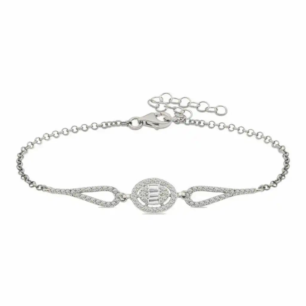 Modaya uyumlu şekilde tasarlanan gümüş baget bileklik modellerini hem gündelik yaşantınızda hem özel gün ve gecelerinizde şık bir şekilde kullanabilirsiniz. Yenilikçi her yaştan kadının beğenisine hitap eden ürünlerle kombinlerinizi tamamlayabilirsiniz. Her biri farklı bir stile hitap edebilen tasarımlarla sizler de spor, klasik ve alternatif giyim tarzlarınıza uygun modellerimizi tercih edebilirsiniz. Bu şık bileklik; doğum günü hediyesi, sevgililer günü hediyesi veya özel günlerde tercih edilebilecek mükemmel bir seçenektir. Gümüş rodyum oval baget taşlı kadın bileklik 925 ayar gümüşten imal edilmiştir. Bu bileklik üzerinde rodyum kaplama vardır. Rodyum kaplama yapılan ürünler parlaklığını uzun süre muhafaza eder, oksitlenmesini geciktirir. Tüm gümüş kadın bileklik modellerinde olduğu gibi gümüş rodyum oval baget taşlı bayan bileklik modeli de el emeği ile üretilmiştir. Gümüş ve değerli taşlar nedeniyle belirtilen ortalama ürün ağırlığında ± %10 sapma olabilmektedir.