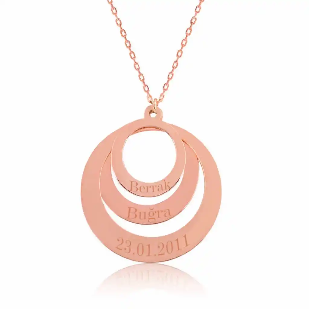 Gümüş halkaların üzerinde yer alan isimlerinizin ve hayatınızda önemli yeri olan tarihin bulunduğu kolye sevdiğiniz kişinin teninde hayat bulsun. Genç aşıkların özel günlerde tercih edebileceği bu özel kolye ile sevdiğinizin boynunu aşkla süsleyin... Sizin olduğu kadar sevdiklerinizin de keyifle takacağı isimlik kolye en güzel hediyelerden biri olacaktır. Ürünlerimizin tamamı el emeği ile üretilmiştir. Gümüş ve değerli taşlar nedeniyle ürün ağırlığında ± %10 sapma olabilmektedir.