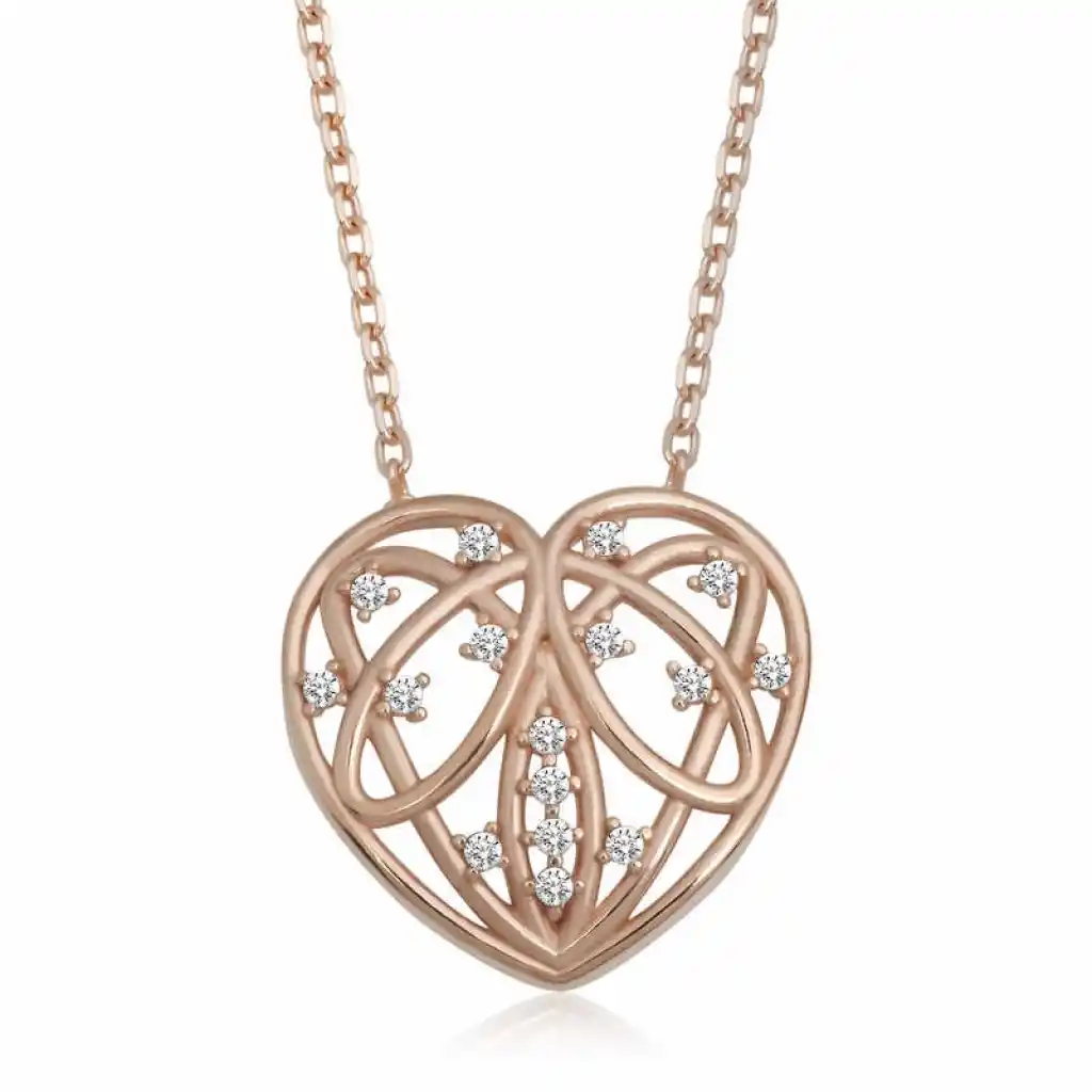 Kalp simgesi daima koşulsuz sevginin ve aşkın sembolü olmuştur. Dini öğretilerde ise kalbin gücü sınırsızdır. Çünkü kalp Yaradanın evi, bizim ise evrene açılan gerçeklik kapımızdır. Bu şık gümüş bombeli kalp kadın kolye; doğum günü hediyesi, sevgililer günü hediyesi veya annelere hediye olarak özel günlerde tercih edilebilecek mükemmel bir seçenektir. Gümüş kalp kadın kolye 925 ayar gümüşten imal edilmiştir. Bu kolye üzerinde rose kaplama yapılmıştır. Rose kaplama yapılan gümüş kadın kolye modelleri parlaklığını uzun süre muhafaza eder. Üzerinde bulunan taşlar zirkondur. Tüm gümüş kadın kolye modellerimizde olduğu gibi gümüş bombeli kalp kadın kolye modeli de el emeği ile üretilmiştir. Gümüş ve değerli taşlar nedeniyle belirtilen ortalama ürün ağırlığında ± %10 sapma olabilmektedir.