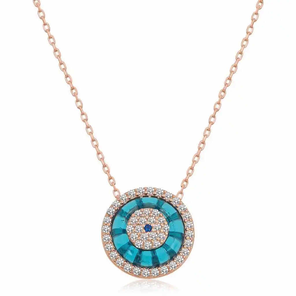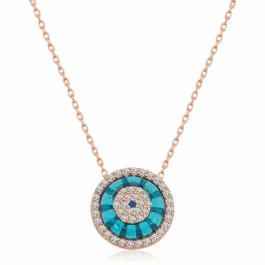 Gümüş Rose Camgöz Nazar Bayan Kolye
