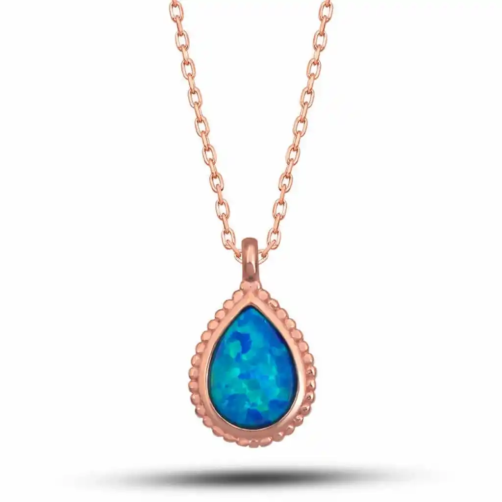 Gümüş Rose Damla Mavi Opal Taşlı Kadın Kolye