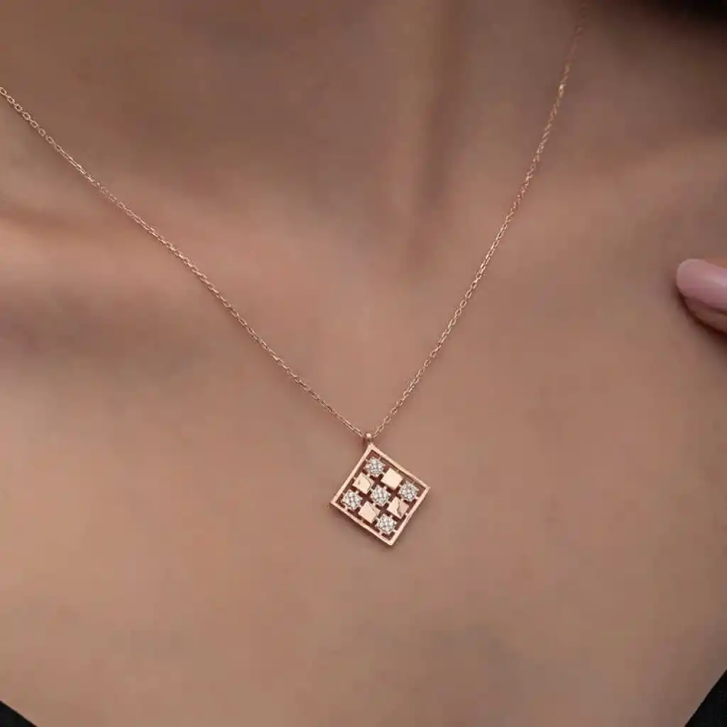Gümüş Rose Dörtgen Zirkon Taşlı Kadın Kolye