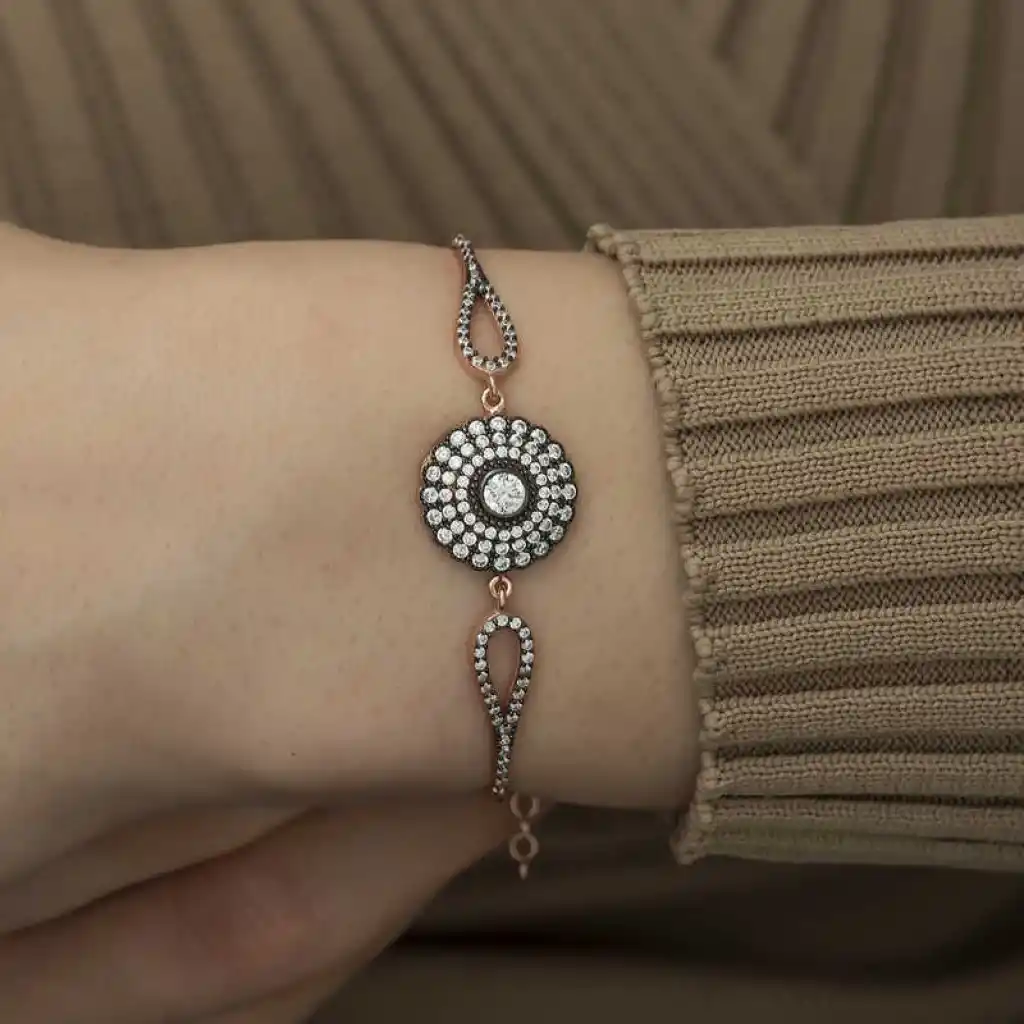 Gümüş Rose Elmas Montür Çiçek Bayan Bileklik