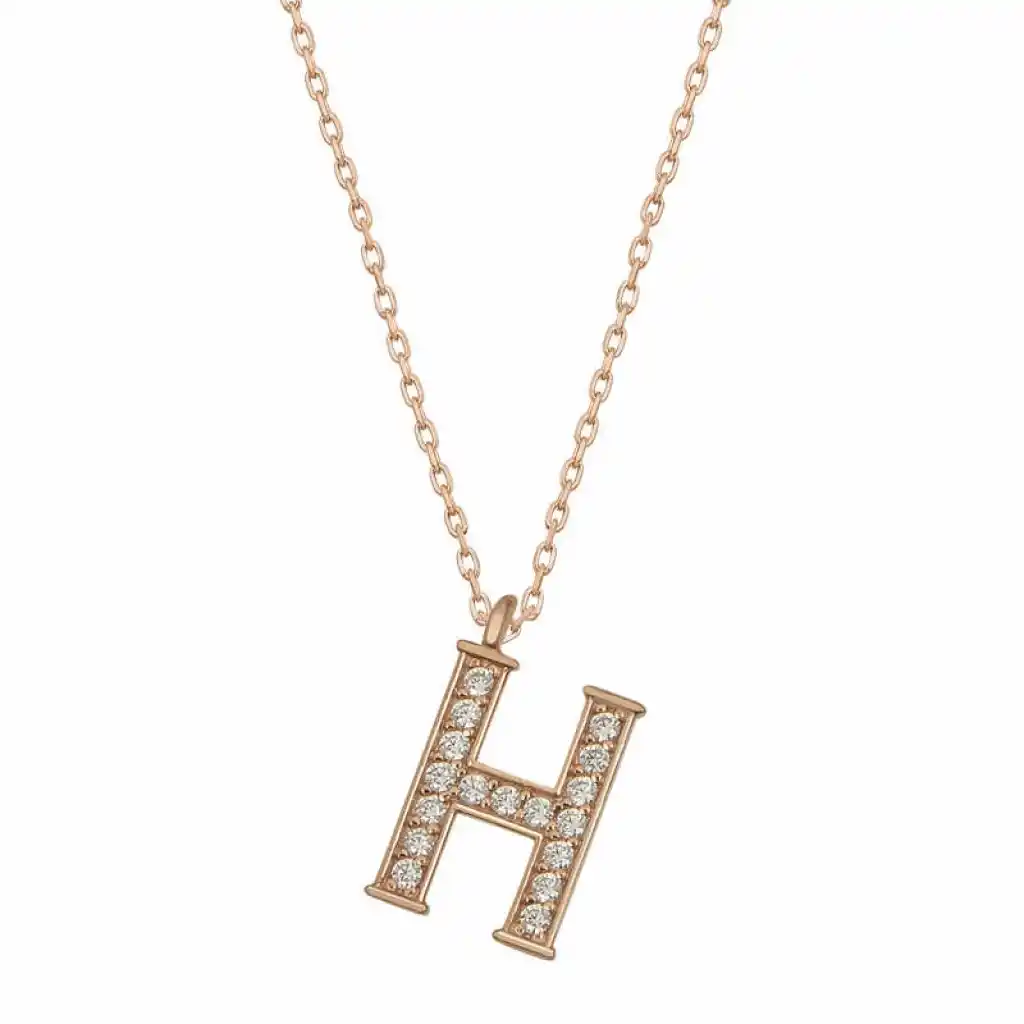 Gümüş Rose H Harfi Kadın Kolye