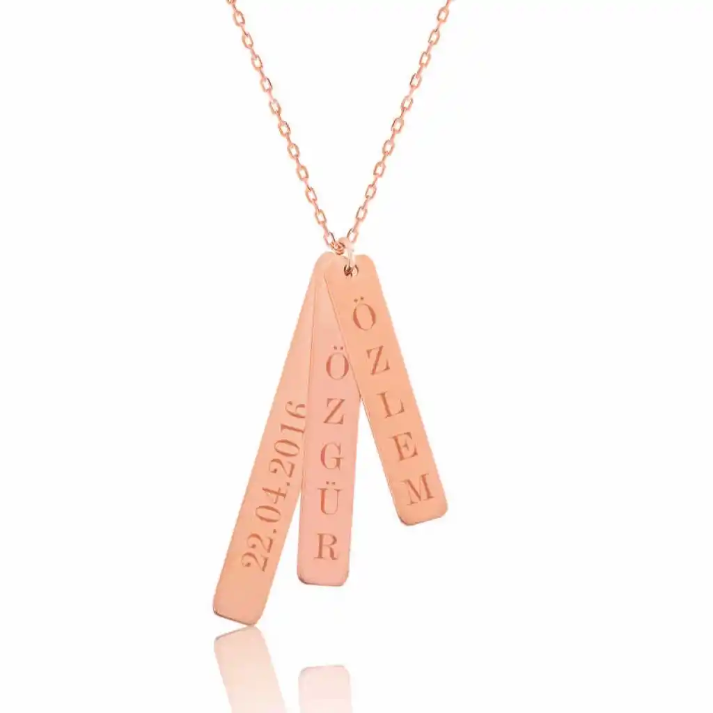 Çubuk plaka kolye ile isimleriniz sevdiğiniz kişinin teninde hayat bulsun. Genç aşıkların özel günlerde tercih edebileceği bu özel kolye ile sevdiğinizin boynunu aşkla süsleyin... Sizin olduğu kadar sevdiklerinizin de keyifle takacağı isimlik kolye en güzel hediyelerden biri olacaktır. Ürünlerimizin tamamı el emeği ile üretilmiştir. Gümüş ve değerli taşlar nedeniyle ürün ağırlığında ± %10 sapma olabilmektedir.