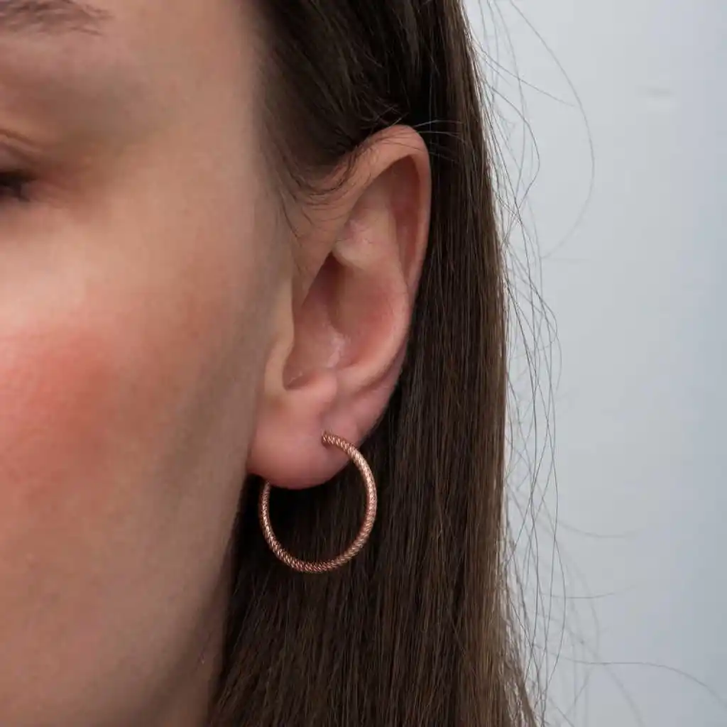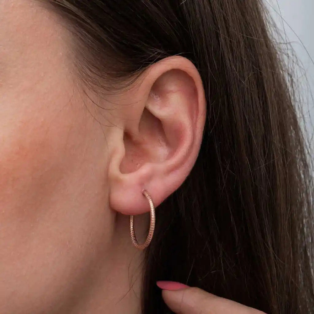 Gümüş Rose Kalemli Halka Kadın Küpe