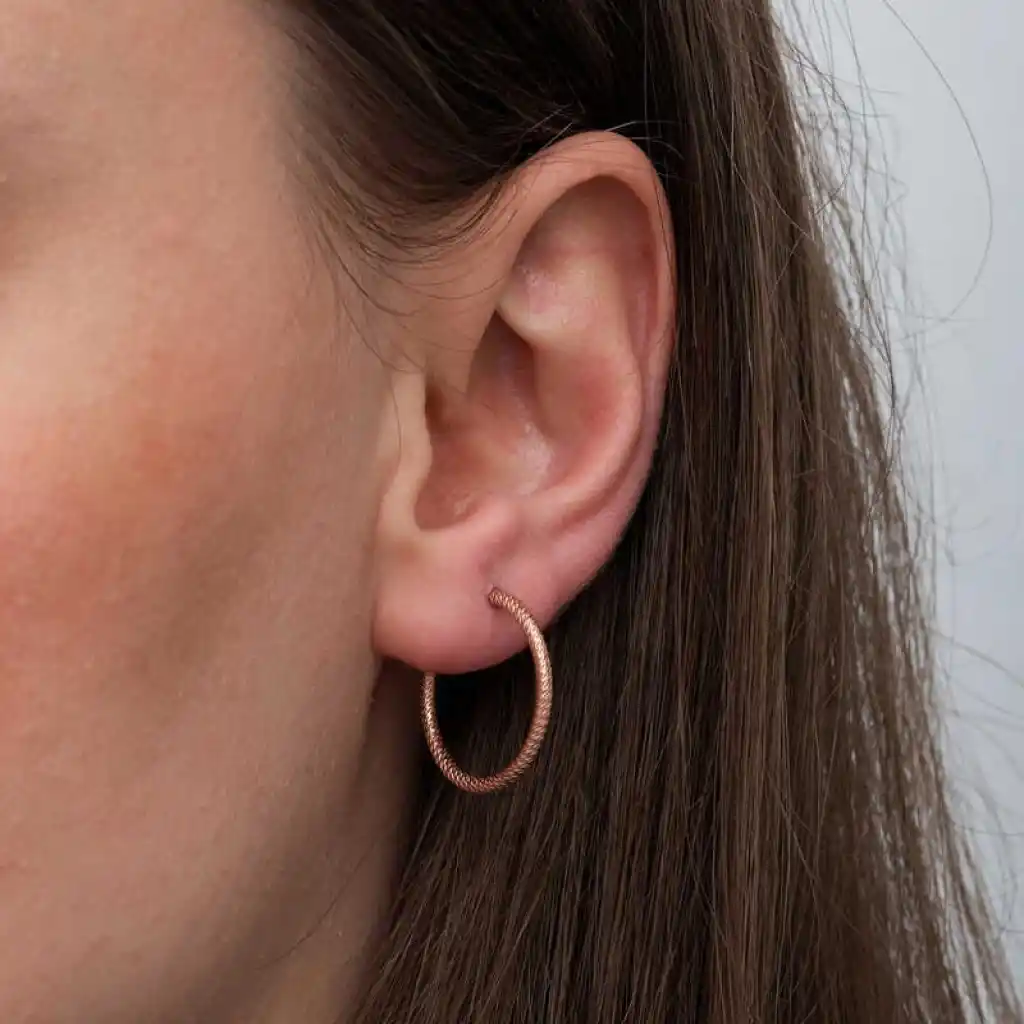 Gümüş Rose Kalemli Halka Kadın Küpe