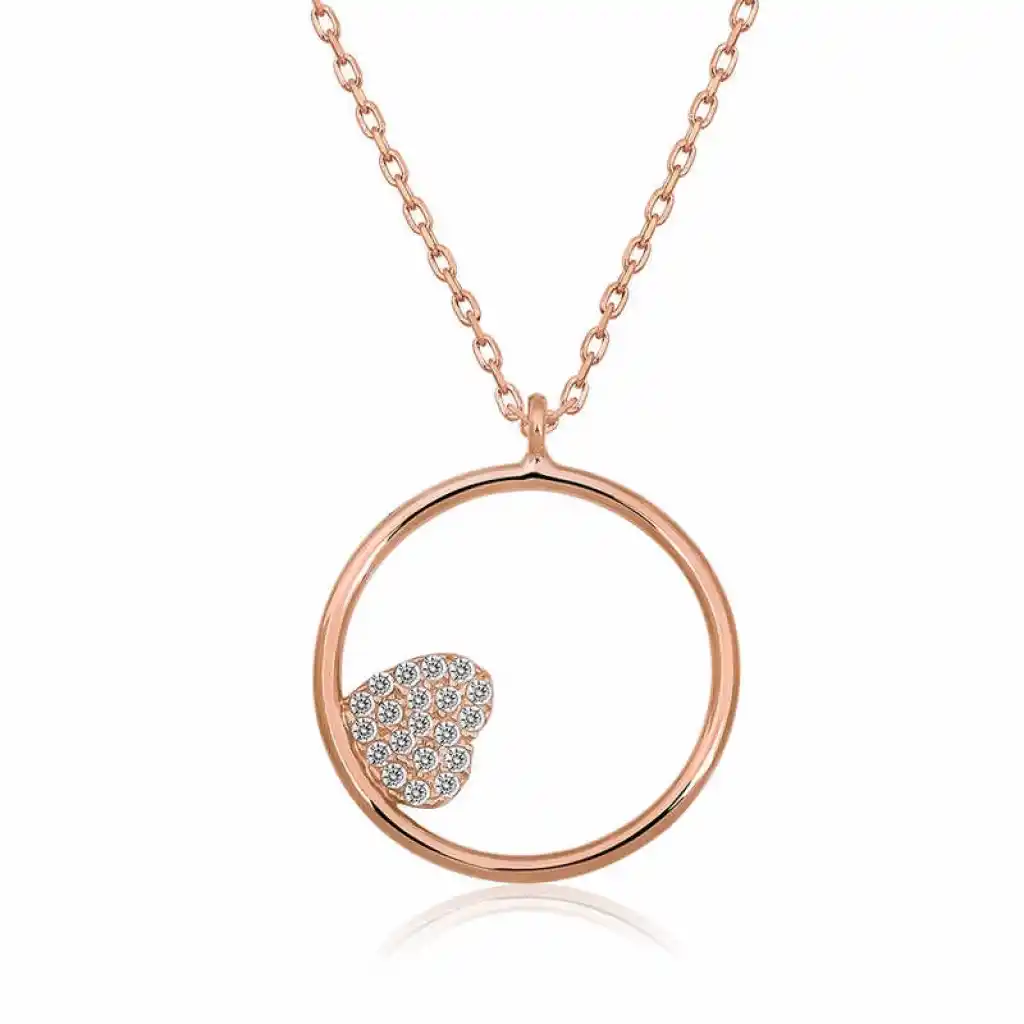Gümüş Rose Kalp Detaylı Halka Kolye