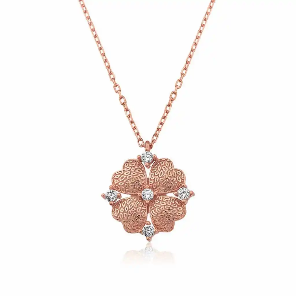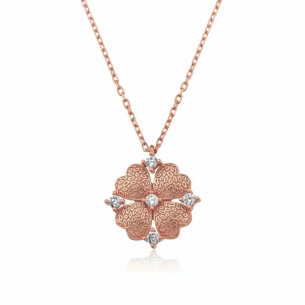 Kalp yapraklı yonca bütün kültürlerde iyi şansın sembolü olarak kabul edilir. Yoncanın dört yaprağının da ayrı birer anlamı vardır. Birinci yaprak ümidi, ikincisi imanı, üçüncüsü aşkı, dördüncü yaprak ise şansı simgeler. Kalp desenli yoncadan oluşan özel tasarım bayan kolye modeli 925 ayar gümüşten imal edilmiştir. Gümüş kalp yapraklı çiçek bayan kolye modeli 45 cm uzunluğunda gümüş zincire sahiptir. Bu zarif kolye genç aşıkların özel günlerde tercih edebileceği çok şık bir seçenek olacaktır. Bu özel kolye ile sevdiğinizin boynunu aşkla süsleyin. Gümüş kalp yapraklı çiçek bayan kolye modeli üzerinde rose altın kaplama vardır. Rose altın kaplama yapılan gümüş bayan kolye modelleri parlaklığını uzun süre muhafaza eder. Gümüş kalp yapraklı çiçek bayan kolye sizin olduğu kadar sevdiklerinizin de keyifle takacağı en güzel hediyelerden biri olacaktır. Tüm gümüş bayan kolye modellerimizde olduğu gibi gümüş kalp yapraklı çiçek bayan kolye de el emeği ile üretilmiştir. Gümüş ve değerli taşlar nedeniyle belirtilen ortalama ürün ağırlığında ± %10 sapma olabilmektedir.