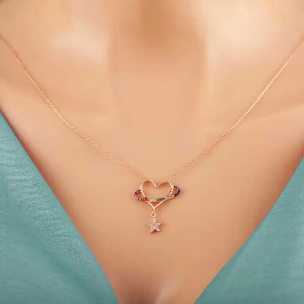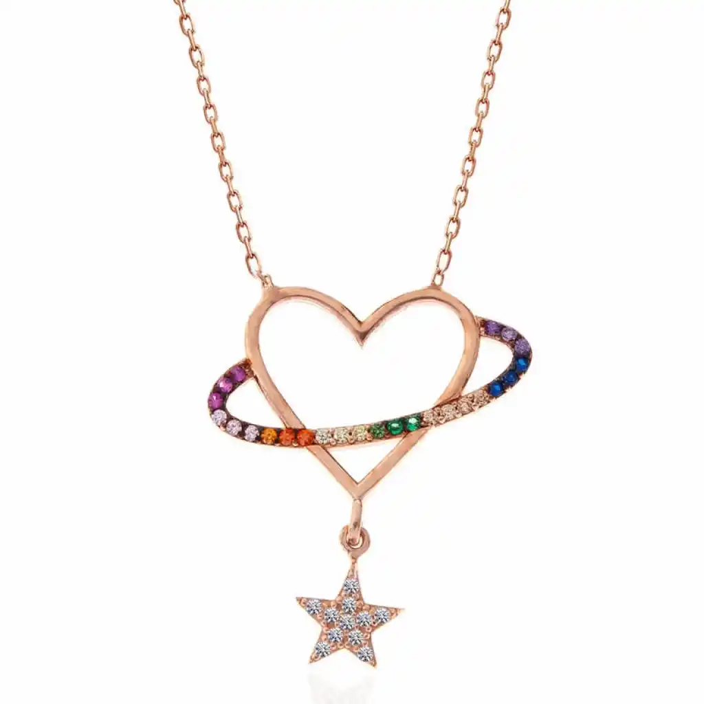 Gümüş Rose Kalp Yıldız Kadın Kolye