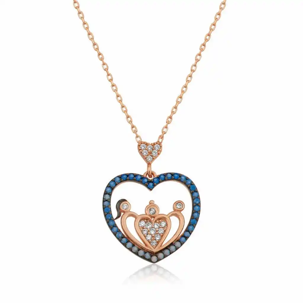 Gümüş Rose Kalpli Aile Bayan Kolye