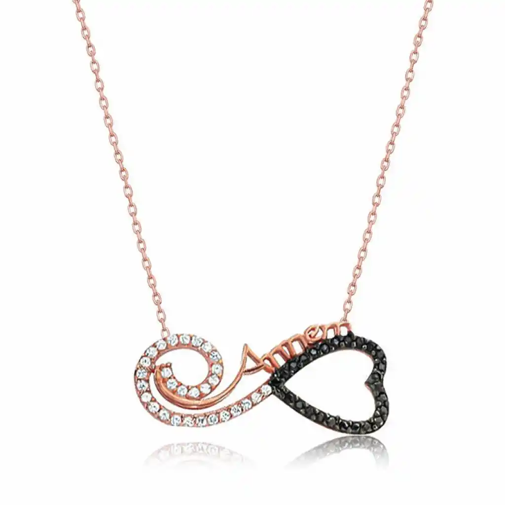 Gümüş Rose Kalpli Sonsuzluk Annem Kolye