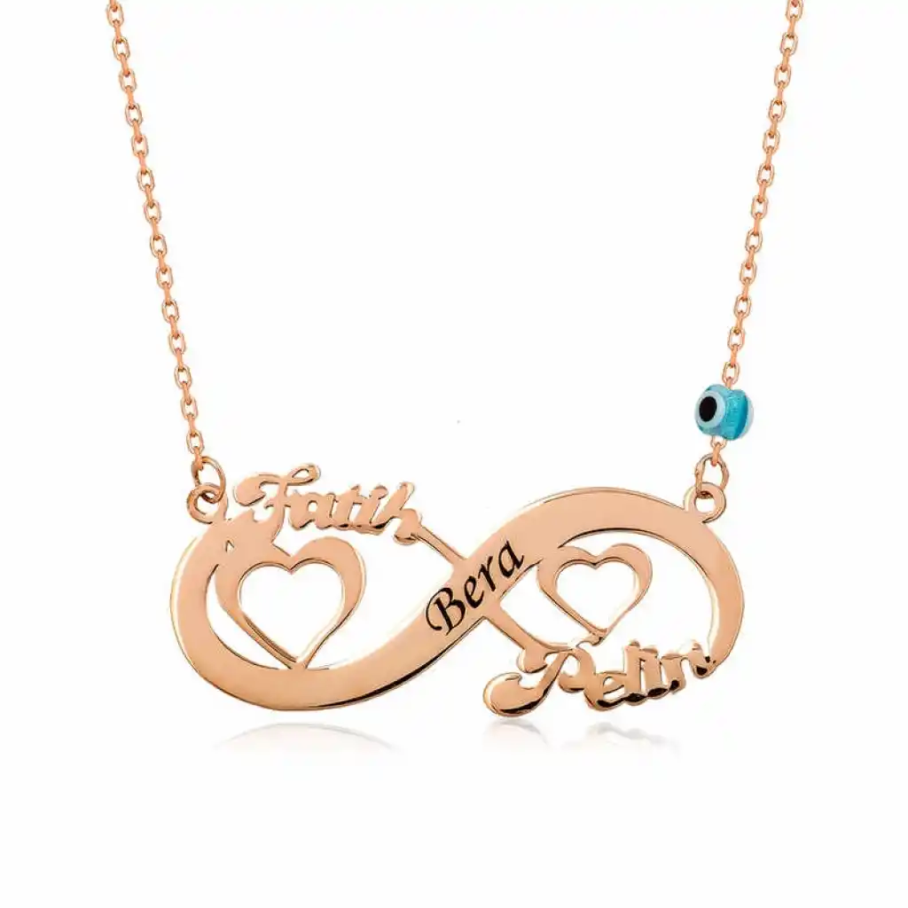 Sevgilinize sonsuz aşkı ifade etmenin en güzel, en anlamlı yollarından biri de ona sonsuzluk temalı gümüş takılar hediye etmektir. Sevgilinize hediye edeceğiniz bu özel kolye ile ona olan sonsuz aşkınızı sevginizi ifade edebilir sonsuza kadar birlikte olacağınız mesajı verebilirsiniz. Sonsuz aşk bayan kolye modeli 925 ayar gümüşten imal edilmiştir. Gümüş üzerine rose altın kaplama yapılmıştır. Rose altın kaplama yapılan gümüş bayan kolyeler parlaklığını uzun süre muhafaza eder ve oksitlenmesi gecikir. Gümüş olan zincirin boyu ortalama 45 cm"dir. Tüm gümüş bayan kolye modellerinde olduğu gibi gümüş kalpli sonsuzluk isimli kolye modeli de el emeği ile üretilmiştir. Gümüş ve değerli taşlar nedeniyle belirtilen ortalama ürün ağırlığında ± %10 sapma olabilmektedir.