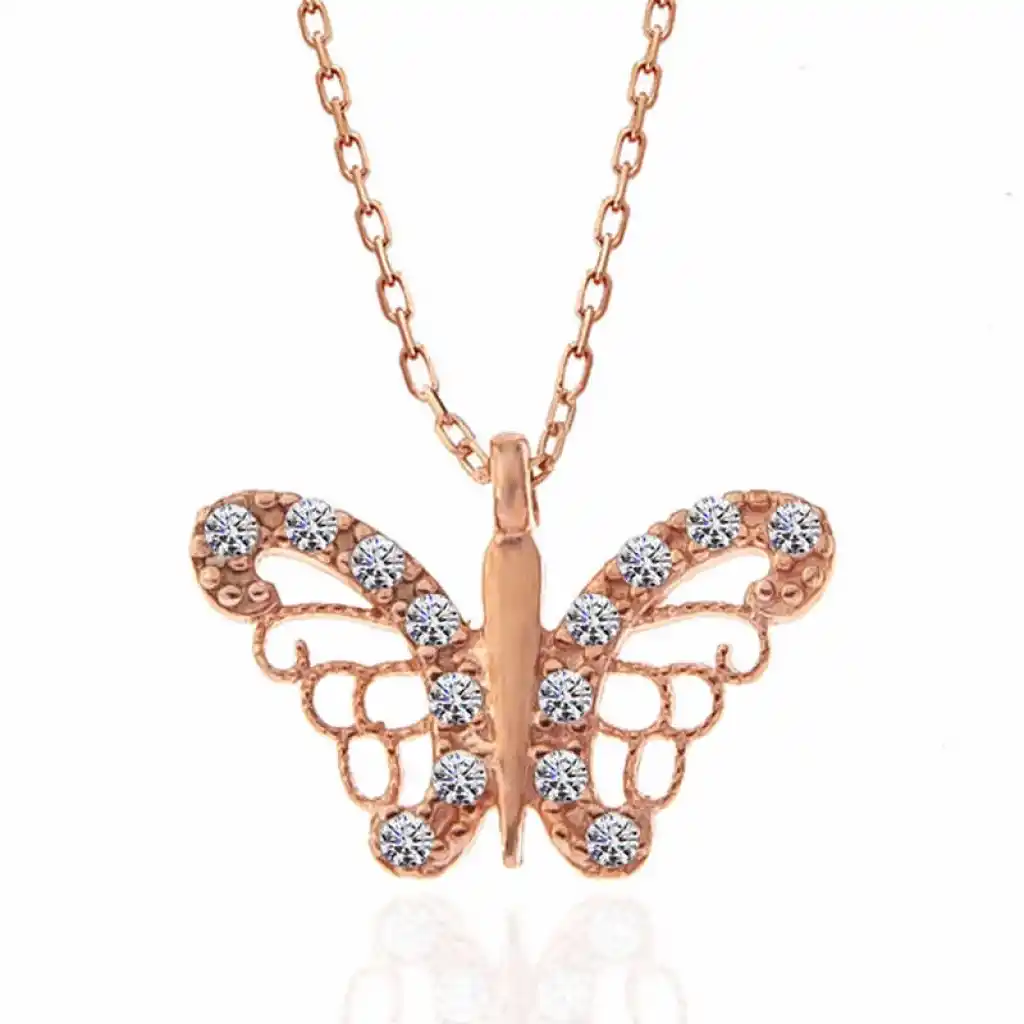 Gümüş Rose Kelebek Kadın Kolye