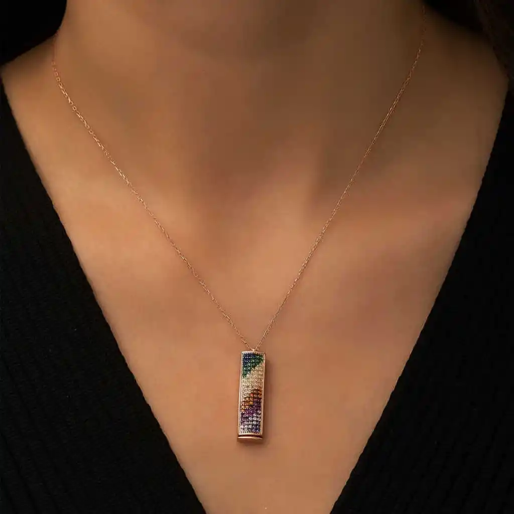 Gümüş Rose Kişiye Özel Gökkuşağı Kolye