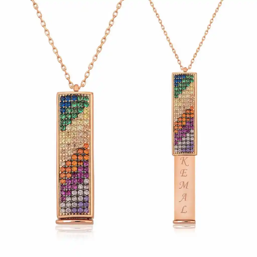 Gümüş Rose Kişiye Özel Gökkuşağı Kolye