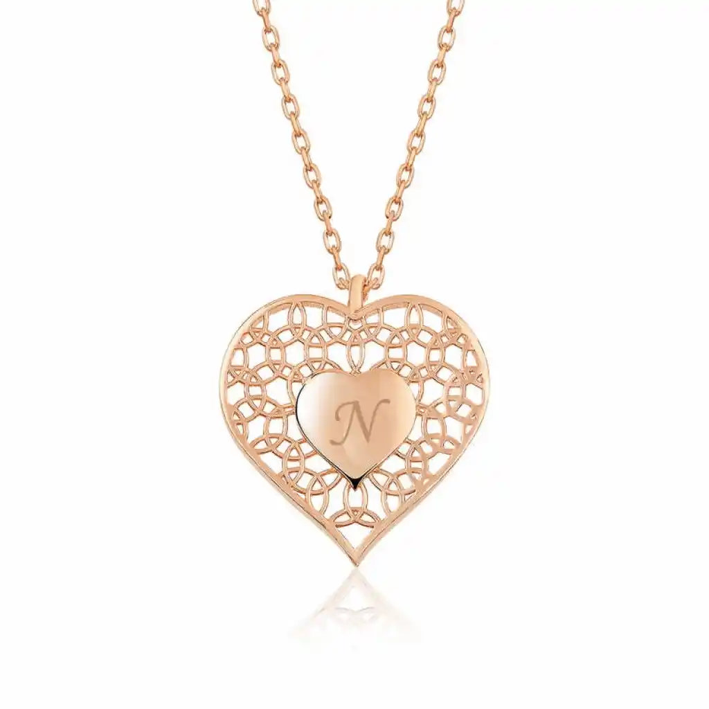 Gümüş Rose Kişiye Özel Kalbin İçinde Kalp Bayan Kolye