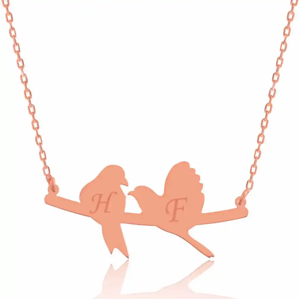 Gümüş Rose Kişiye Özel Sevgi Kuşları İsimli Kolye