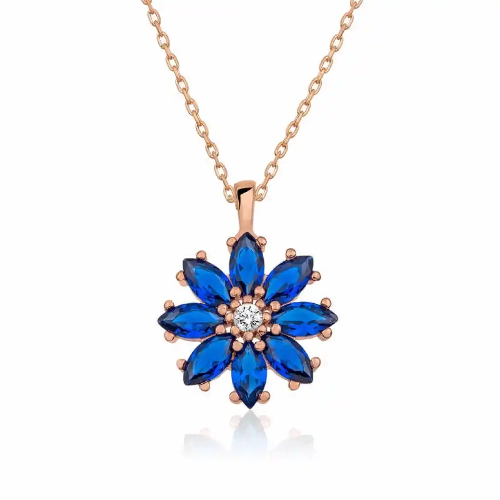 Sevdiklerinize duygularınızı ifade etmenin yolu neden çiçek desenli zarif bir kolye olmasın? Özel zamanlarda O’na gönderebileceğiniz, hediye seçenekleri arasında yer alan bu şık kolye sevdiklerinizi sevindirmenin en güzel yolları arasında yer almaktadır. En kaliteli, en parlak, en ışıltılı taşlarla hazırlanmış gümüş lacivert çiçek bayan kolye sevgisini bir kez daha anlatmak isteyenleri, sen bir çiçeksin demek isteyenleri bekliyor. Bu özel tasarım gümüş lacivert çiçek bayan kolye 925 ayar gümüşten imal edilmiştir. Gümüş üzerine rose kaplama yapılmıştır. Rose altın kaplama yapılan gümüş bayan kolye modelleri parlaklığını uzun süre muhafaza eder ve oksitlenmesi gecikir. Gümüş olan zincir boyu ortalama 45 cm"dir. Tüm bayan gümüş kolye modellerinde olduğu gibi gümüş lacivert çiçek bayan kolye de el emeği ile üretilmiştir. Gümüş ve değerli taşlar nedeniyle belirtilen ürün ağırlığında ± %10 sapma olabilmektedir.